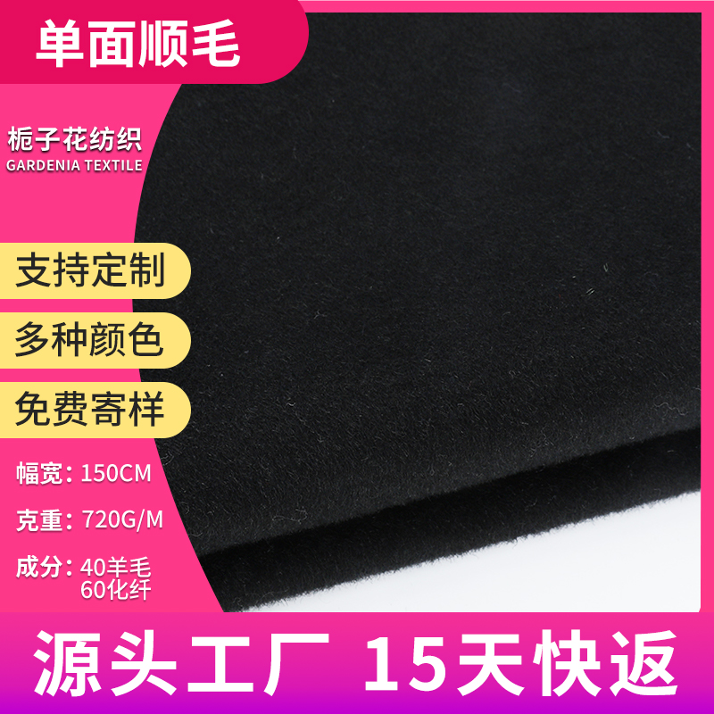| 产品名称 | 40羊毛黑色单面顺毛呢面料 |