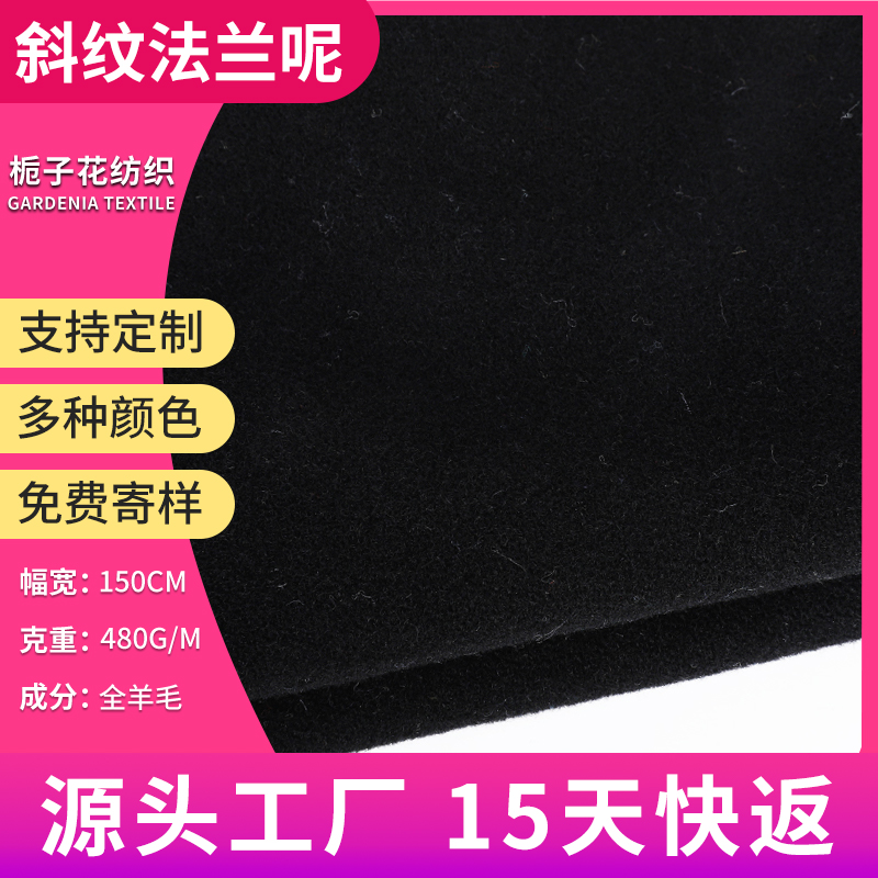 首页 > 面料 > 供货 > 无锡栀子花纺织科技有限公司-全羊毛黑色斜纹法兰呢面料