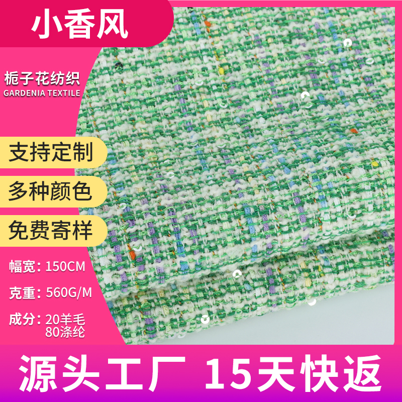 首页 > 面料 > 供货 > 无锡栀子花纺织科技有限公司-20羊毛绿色小香风布料