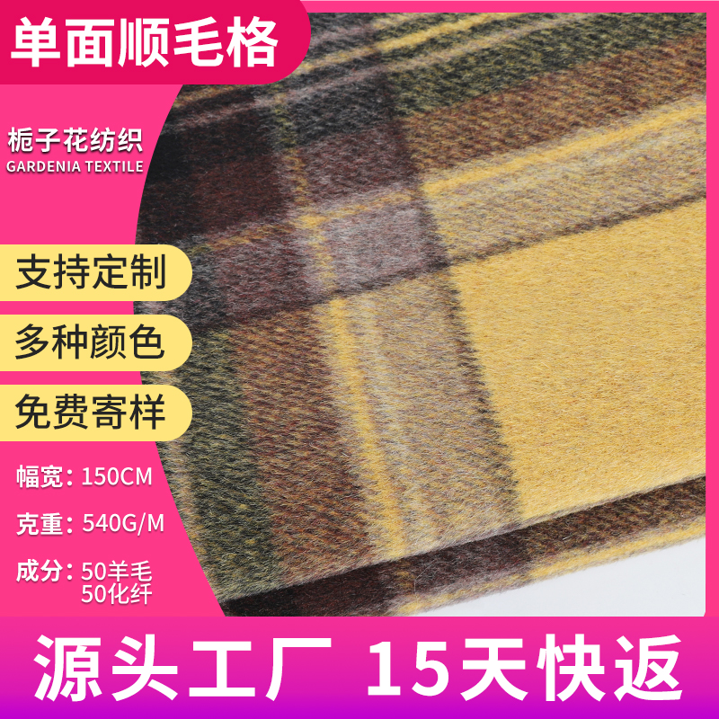 | 产品名称 | 50羊毛格纹单面顺毛呢面料 |