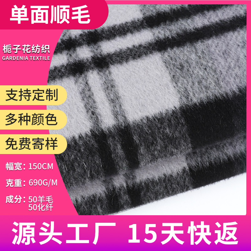 | 产品名称 | 50羊毛黑灰格单面顺毛呢面料 |