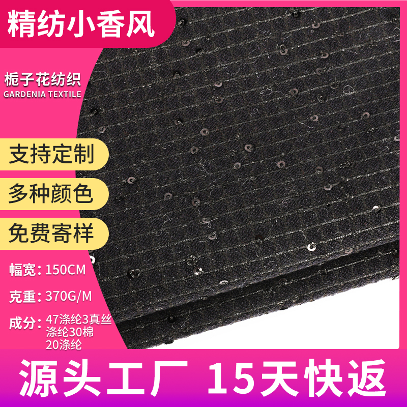首页 > 面料 > 供货 > 无锡栀子花纺织科技有限公司-47涤亮片小香风精纺布料