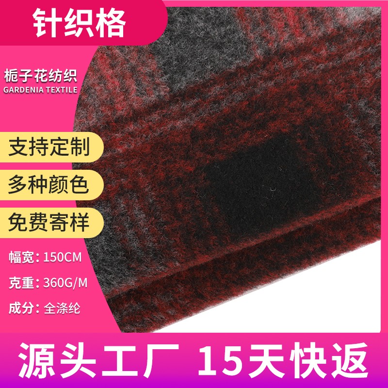 | 产品名称 | 全涤黑红灰格纹针织布料 |