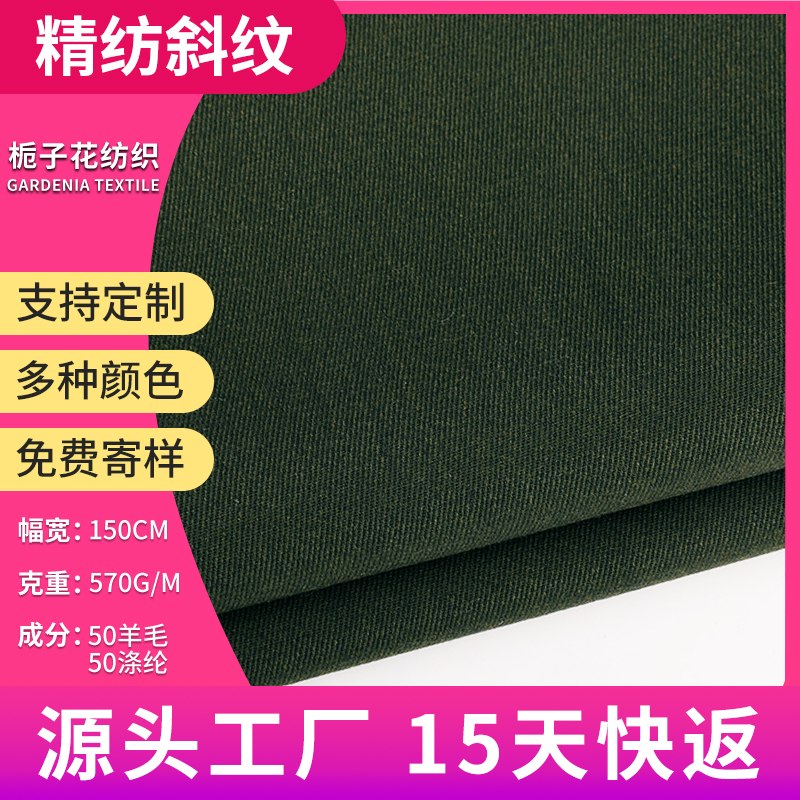 | 产品名称 | 50羊毛军绿精纺斜纹呢面料 |