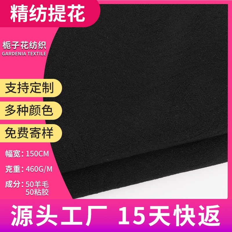 首页 > 面料 > 供货 > 无锡栀子花纺织科技有限公司-50羊毛黑色精纺提花毛呢面料