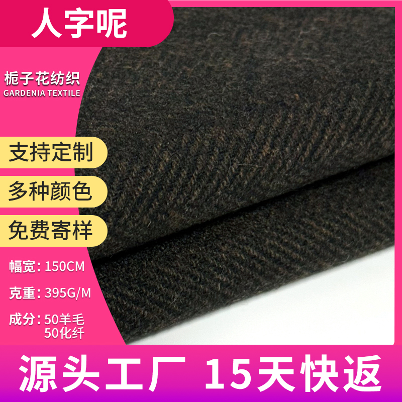 首页 > 面料 > 供货 > 无锡栀子花纺织科技有限公司-50羊毛咖啡色人字呢面料