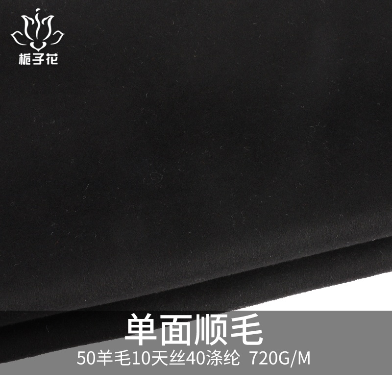 首页 > 面料 > 供货 > 无锡栀子花纺织科技有限公司-50羊毛黑色单面顺毛呢面料