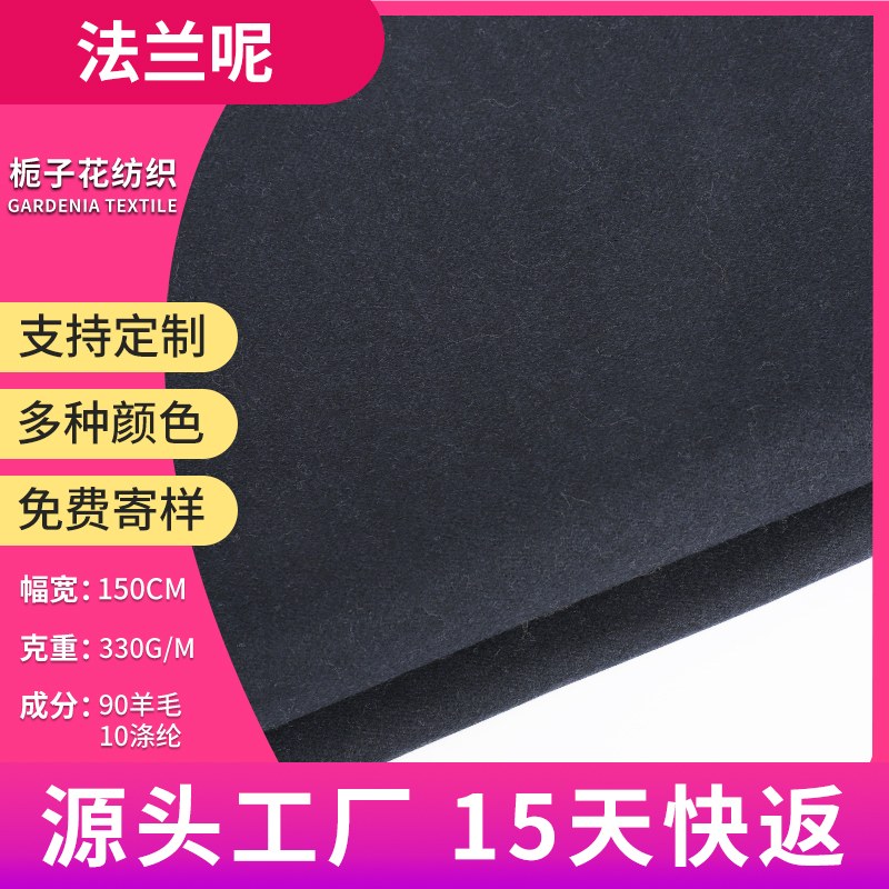 | 产品描述 | 法兰呢面料是毛呢粗纺布料的一种,是通过梭织技术成坯布,在通过缩尼技术,起绒技术成品的。羊毛和涤纶混合的法兰呢面料具有多种特点,包括耐磨性、保暖性、弹性和抗皱性等。这种面料还具有吸湿性,能够吸收人体排出的湿气,穿着时感到干爽舒适?。总的来说,这款法兰呢面料结合了羊毛的自然优势和涤纶的耐用性,适合制作需要一定耐用性和保暖性的服装,如西装、大衣等。 呢子布料因为个性新颖别致,挺括中不失柔软,朴素中又不失时尚,粗犷中蕴涵高雅,故在秋冬市场十分走俏。 |