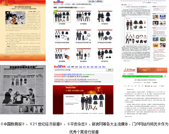 我们用校服展现国家形象:彭丽媛带领美国第一夫人米歇尔和比利时王后玛蒂尔德分别参观的北京两所学校——北师二附和北京启喑实验学校,以及温家宝总理和多名国家领导人视察的北京实验二小,均为优卡的合作校。在纪念反法西斯胜利70周年大阅兵上,华师一附朝阳学校的学生,身着优卡校服,向全世界展现当代学生风采;66周年国庆,优卡合作校——北京五路通小学的学生,与国家领导人一同向人民英雄致敬……优卡以校服承载文化,打造名校专属形象,让中国的青少年更自信,让中国的学校与世界对话!