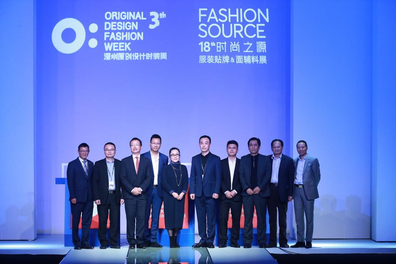 深圳市经济贸易和信息化委员会服务贸易处处长李岚,香港中华厂商联合会会董王象志,香港毛皮业协会会长黄友辉,桐乡濮院羊毛衫市场管委会副主任钱伟国,广东省纺织协会会长陈统宣,深圳市纺织协会会长刘士杰,深圳市鹏城展览策划有限公司董事长张祥全,时装周组委会主席董耀华,时装周组委会主席张建,时装周组委会秘书长杨春华等共同启动2016FASHIONSOURCE第十八届深圳服装贴牌及面辅料展&第三届深圳原创设计时装周开幕仪式。