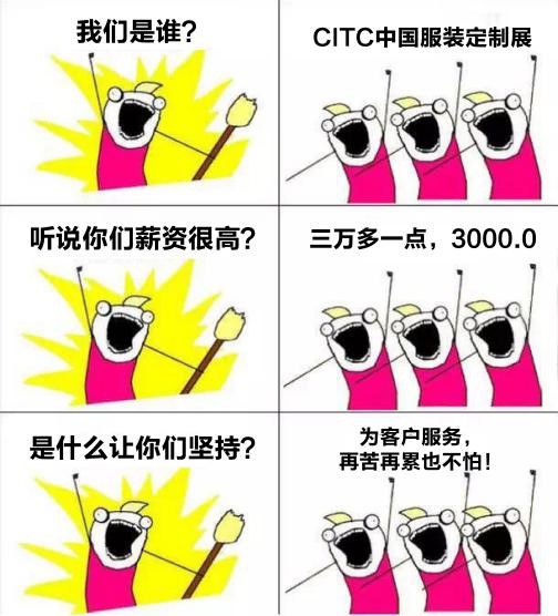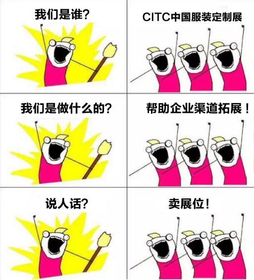 事实上,参加CITC中国服装定制展不仅仅是一个展位,而是一个自我展示的机会,自我品牌价值提升的渠道!