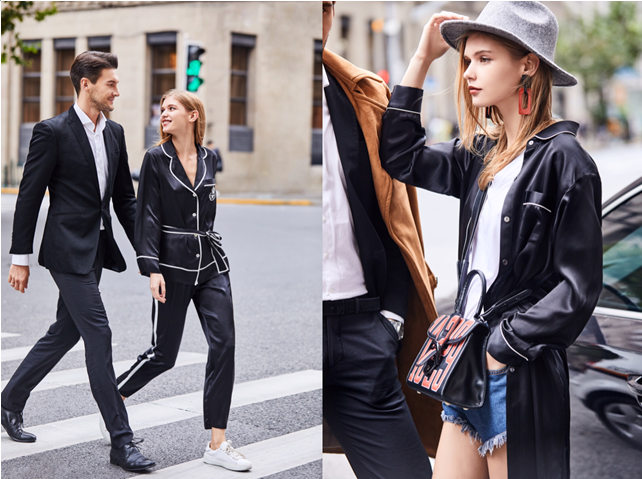 突破传统的设计发布,商业订货模式,创新以丝绸睡衣流行趋势为主,将时下流行的色彩,花卉,鞋包穿搭等元素进行相互渗透,交融,传递出一种新的穿衣生活理念,领导丝绸睡衣行业的流行方向。