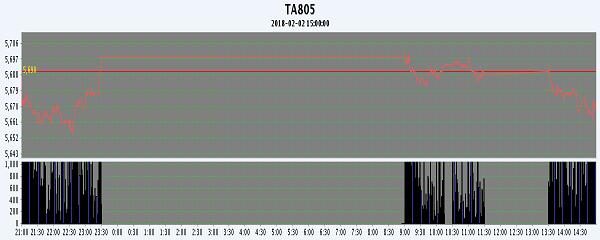 | TA805 | 5670 | 5706 | 5654 | 5668 | 5680 | -10 | 469174 | -284992 | 41259040 | 1263020 | -35228 |