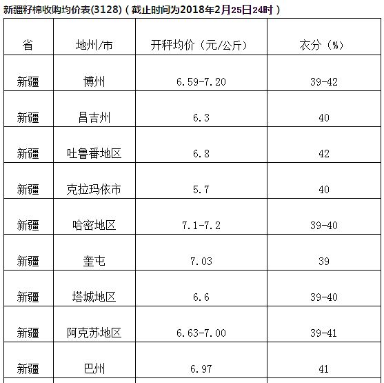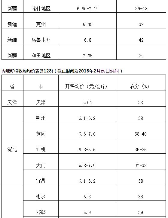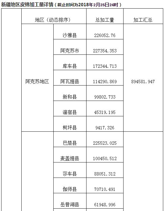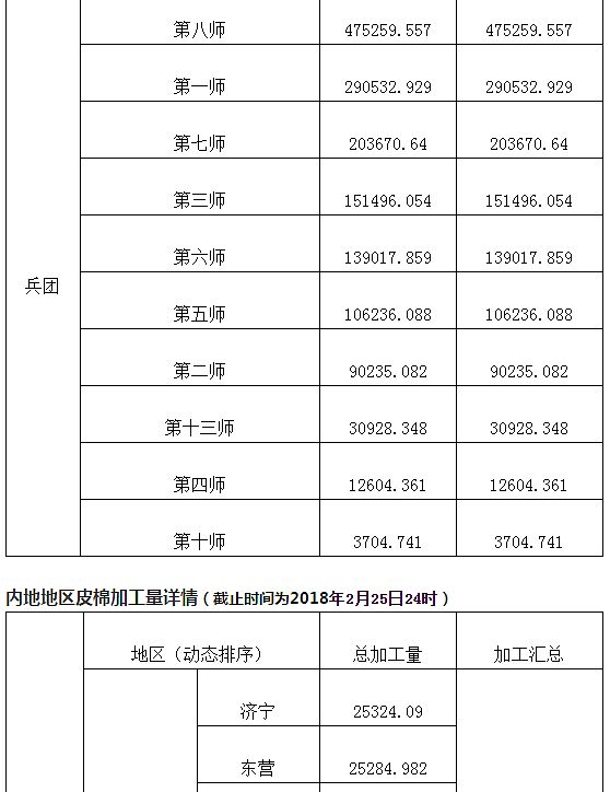 截至2018年2月25日24点,统计400型加工企业皮棉加工情况:
