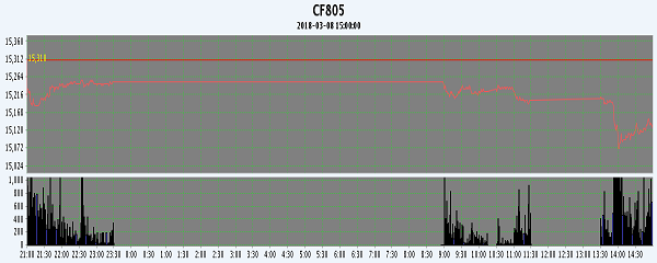 | CF805 | 15210 | 15260 | 15050 | 15125 | 15165 | -145 | 148468 | -27246 | 11699898 | 258934 | -14538 |