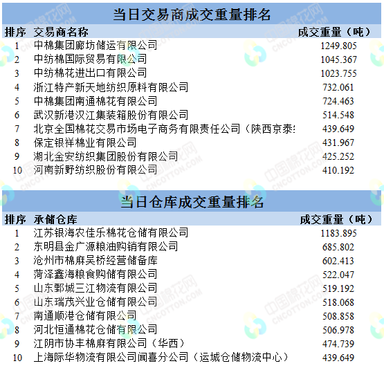 当日地产棉成交4716.751吨,成交率18.27%,成交均价13820元/吨,平均加价116元/吨;新疆棉12843.437吨,成交率100%,成交均价14325元/吨,平均加价502元/吨。