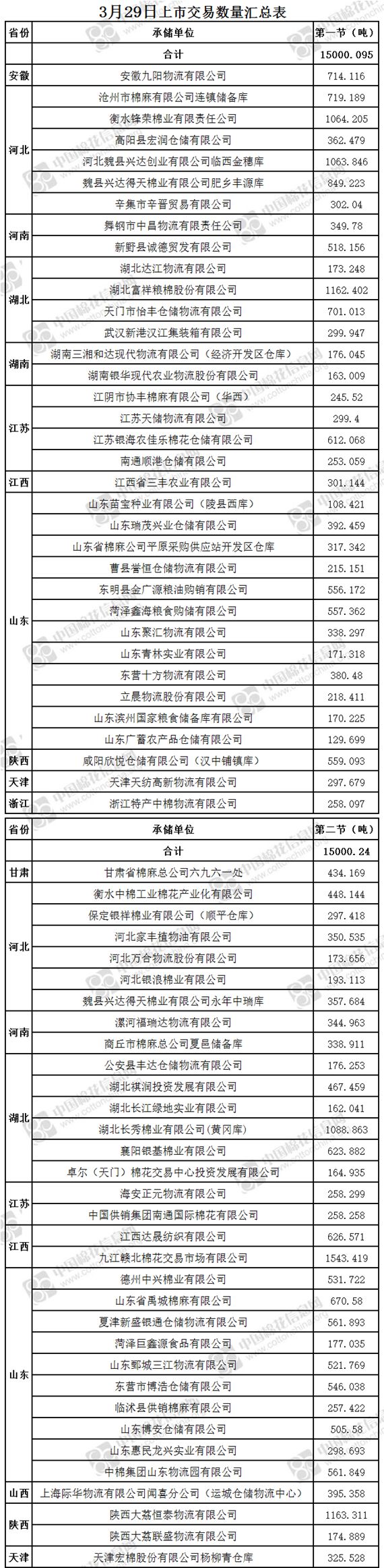 3月29日两节共计轮出储备棉30000.335吨。第一节销售储备棉15000.095吨,其中需要倒垛出库86捆。第二节销售储备棉15000.24吨,其中需要倒垛出库70捆。