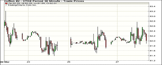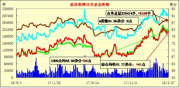 27日纽约期棉市场近涨远跌。1805合约结算价82.02美分,涨24点;1807合约结算价82.44美分,涨22点;1812合约结算价77.62美分,跌8点;1903合约结算价77.80美分,跌8点。当日5月合约小幅高开,开盘后在81.80-82.20美分区间震荡运行,后受支撑交易重心上行,至82.50美分处卖盘入场市场被打压,一路向下跌至当日低点81.72美分,于低点处买盘发力,市场飙升至当日高点,后受获利了结盘打压回落,最终以小幅上涨收盘。1805合约结束连续四日跌势。美国德州天气引发市场持续关注,目前西德州旱情持续,且近期尚无降雨预报。外围美元指数上涨,玉米期货上涨,大豆和小麦期货下跌。