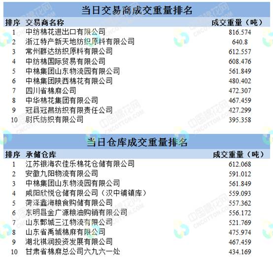 地产棉成交3390.124吨,成交率17.37%,成交均价13687元/吨,平均加价120元/吨,最高成交价14410元/吨,最低成交价13270元/吨;新疆棉成交10487.99吨,成交率100%,成交均价14351元/吨,平均加价542元/吨,最高成交价15740元/吨,最低成交价13480元/吨。