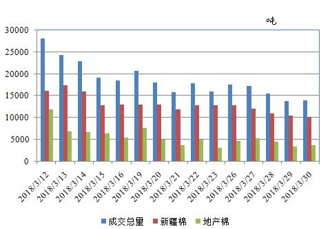 2017/2018年度储备棉轮出截至3月30日成交量走势