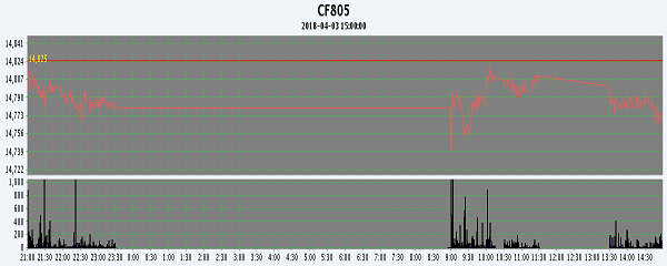 主力CF805合约当日交易走势图