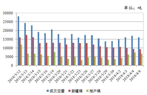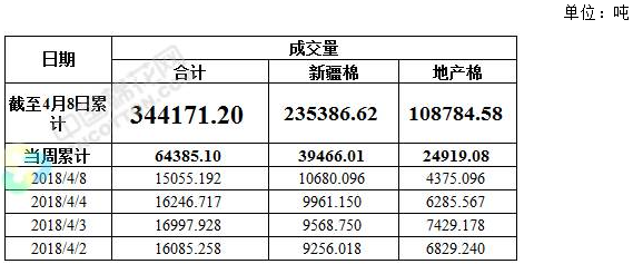 2017/2018年度储备棉轮出截至4月8日成交量走势
