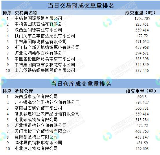 地产棉成交5676.988吨,成交率25.68%,成交均价13787元/吨,平均加价174元/吨,最高成交价15350元/吨,最低成交价12770元/吨;新疆棉成交7912.024吨,成交率100%,成交均价14486元/吨,平均加价828元/吨,最高成交价15950元/吨,最低成交价13650元/吨。