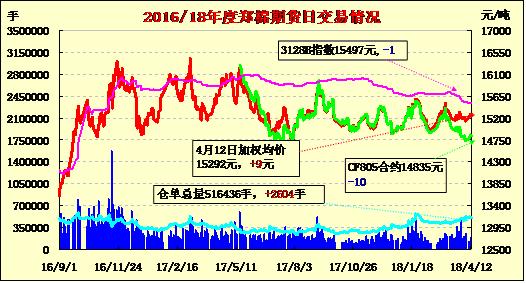 | CF901 | 15820 | 15865 | 15780 | 15790 | 15815 | -20 | 12094 | -3816 | 376578 | 94408 | 3544 |