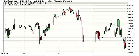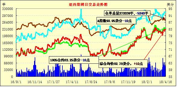 16日纽约期棉市场整体收跌。1805合约结算价83.25美分,跌16点;1807合约结算价83.22美分,跌13点;1812合约结算价78.54美分,跌37点;1903合约结算价79.67美分,跌36点。7月合约小幅高开,开盘后缺乏有利支撑市场下行,在83.10-83.60美分区间震荡运行,后受获利了结盘压力市场走低,跌至当日低点83.04美分处买盘发力,交易重心走高,至高点处卖盘入场市场走低,后呈震荡下跌趋势运行,临近收盘时虽有小幅回升,但最终小幅收跌。近期现货销售由于价格原因有所减少。外围美元指数下跌,玉米、大豆和小麦期货下跌。
