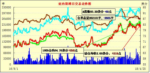 25日纽约期棉市场全面收涨。1805合约结算价84.76美分,涨250点;1807合约结算价83.94美分,涨243点;1812合约结算价78.99美分,涨140点;1903合约结算价78.94美分,涨123点。当日7月合约稳定开盘,上半场表现平淡无奇,维持小幅震荡趋势运行,后买盘发力,市场受支撑迅速走高向上突破84美分一线,最终收于近高点,以大涨收盘,夺回前一日失地。美国农业部(USDA)美棉出口周报即将发布,各方普遍关注,市场对美棉出口和装运量多持乐观态度。外围美元指数上涨,玉米、大豆和小麦期货上涨。