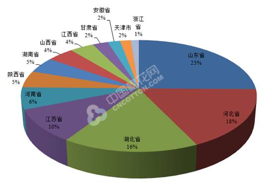 2017/2018年度储备棉出库销售截至5月18日主要省份累计成交情况图