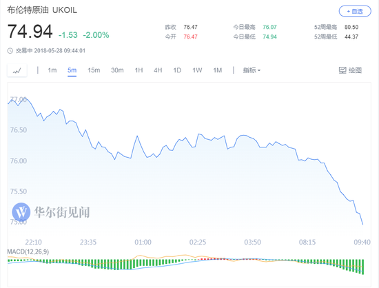 上周五沙特和俄罗斯能源部长周五表示,两国准备放宽减产举措之后,国际油价大跌,布伦特跌近3%,WTI跌4%。