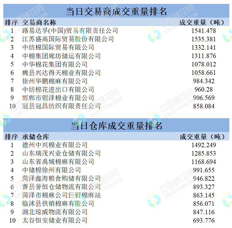 地产棉成交6628.692吨,成交率100%,成交均价15439元/吨,平均加价1374元/吨,最高成交价16990元/吨,最低成交价14350元/吨;新疆棉成交23371.8932吨,成交率100%,成交均价16033元/吨,平均加价1885元/吨,最高成交价17520元/吨,最低成交价15160元/吨。