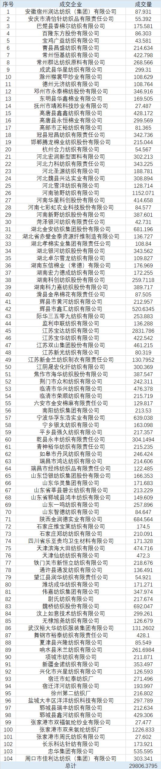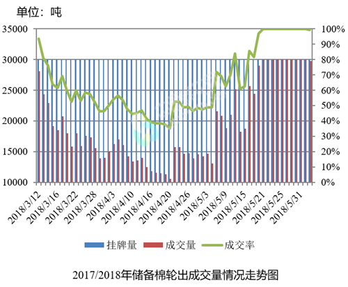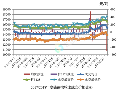 6月4日储备棉轮出销售资源30010.4485吨,实际成交29806.3795吨,成交率99.32%。平均成交价格15430元/吨(较前一日下跌508元/吨);折3128价格16707元/吨(较前一日下跌337元/吨)。