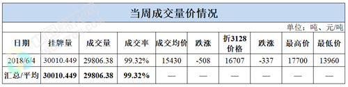 累计情况:截至6月4日,累计计划出库177万吨,累计出库成交115万吨,成交率为65%;成交最高价17700元/吨,最低价12700元/吨。