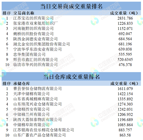 地产棉成交6283.914吨,成交率97%,成交均价14791元/吨,平均加价399元/吨,最高成交价15880元/吨,最低成交价13960元/吨;新疆棉成交23522.4655吨,成交率100%,成交均价15601元/吨,平均加价978元/吨,最高成交价17700元/吨,最低成交价14570元/吨。