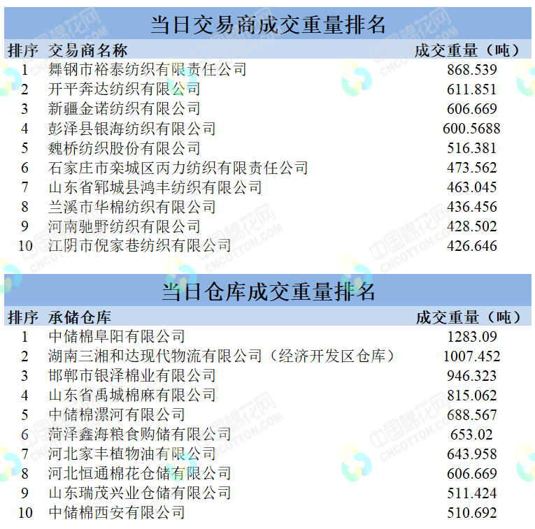 地产棉成交4175吨,成交率28%,成交均价13749元/吨,平均加价171元/吨,最高成交价15530元/吨,最低成交价13010元/吨;新疆棉成交10367.0682吨,成交率70%,成交均价14615元/吨,平均加价332元/吨,最高成交价16950元/吨,最低成交价13270元/吨。