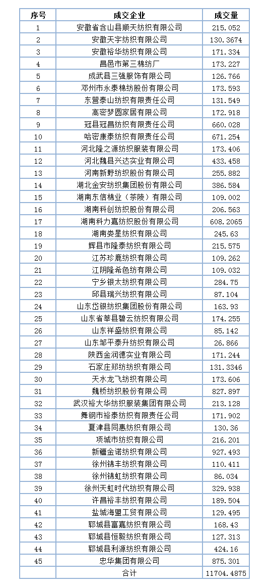 地产棉成交4171.962吨,成交率21%,成交均价14620元/吨,平均加价198元/吨,最高成交价16210元/吨,最低成交价13500元/吨;新疆棉成交7532.5255吨,成交率77%,成交均价15174元/吨,平均加价346元/吨,最高成交价17260元/吨,最低成交价13800元/吨。