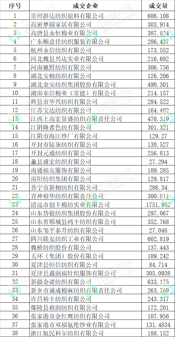 地产棉成交6576.411吨,成交率27%,成交均价14341元/吨,平均加价59元/吨,最高成交价13620元/吨,最低成交价16230元/吨;新疆棉成交4534.637吨,成交率77%,成交均价15219元/吨,平均加价510元/吨,最高成交价17050元/吨,最低成交价14360元/吨。
