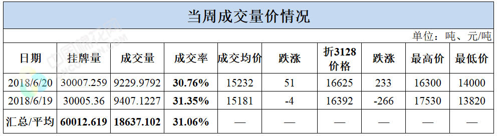 累计情况:截至6月20日,累计计划出库210万吨,累计出库成交129.98万吨,成交率为62%;成交最高价17700元/吨,最低价12700元/吨。