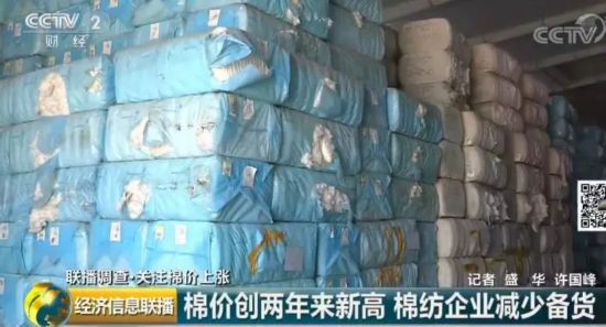 在山东省淄博市一家大型纺织厂厂库里,企业负责人告诉记者,由于近期棉花价格不稳定,且比上半年高不少,企业不敢大量囤货,目前存货只够不到2个月生产需求。