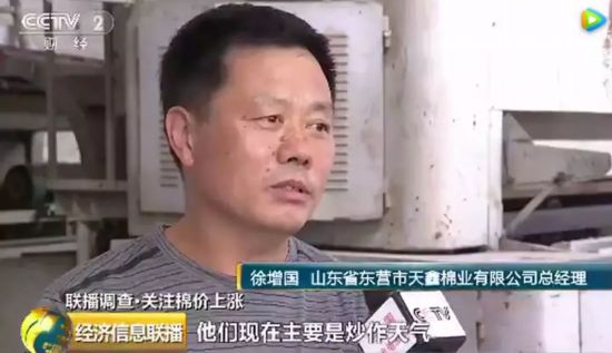 山东省东营市天鑫棉花加工厂总经理徐增国:我认为一大部分是在炒作吧,他们现在是在炒作天气。