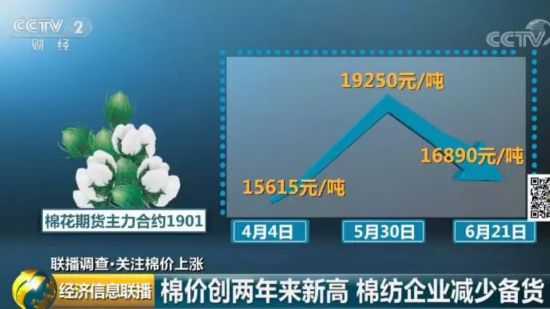 据了解,今年初棉花收购最高峰时,价格也就是13000元/吨左右,没想到4月淡季了,价格却忽然暴涨,现货价格最高到18000元/吨左右,最近维持16000元/吨左右。棉花价格维持在两年来高位,导致下游棉纺企业拿货积极性不高,但棉花期货价格近期却在短暂时间内迅速拉升,从原来的15000元/吨左右一路涨到5月30日的最高点19250元/吨。