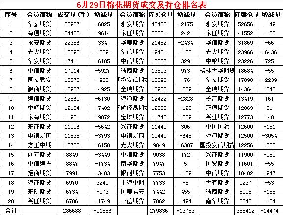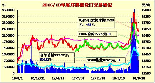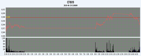 6月29日周三纽约棉花期货收跌,隔夜郑棉回升震荡,今日早盘在空头回补失去下继续反弹,午后小幅调整,日线形成小阳线。日内成交量萎缩,持仓量减少。基本面情况:上周美国净签约本年度陆地棉-4286吨,装运83416吨。净签约下年度陆地棉44497吨。