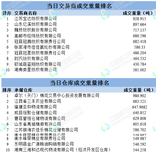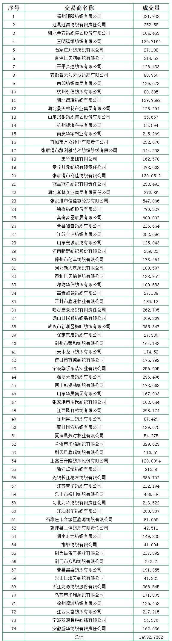 地产棉成交6472.572吨,成交率32.1%,成交均价14349元/吨,平均加价470元/吨,最高成交价16120元/吨,最低成交价13460元/吨。新疆棉成交8520.1662吨,成交率86.7%,成交均价15257元/吨,平均加价969元/吨,最高成交价16480元/吨,最低成交价14440元/吨。