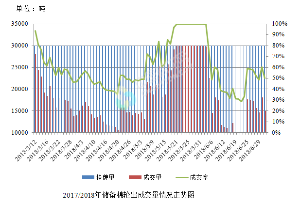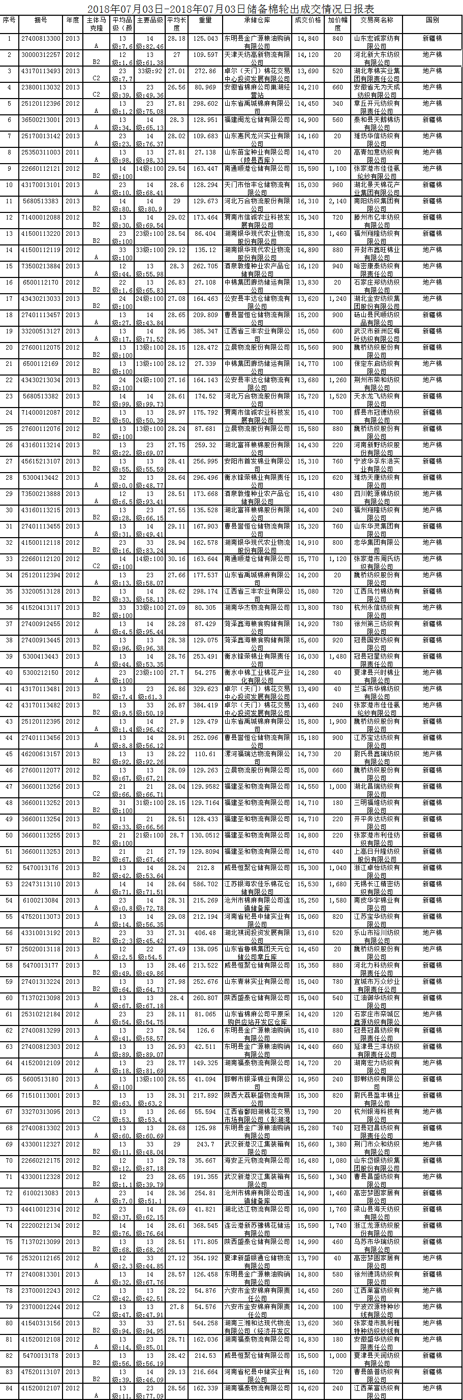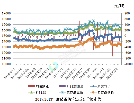 7月3日储备棉轮出销售资源30006.8782吨,实际成交14992.7382吨,成交率49.96%。平均成交价格14865元/吨(较前一日上涨170元/吨);折3128价格16261元/吨(较前一日上涨208元/吨)。