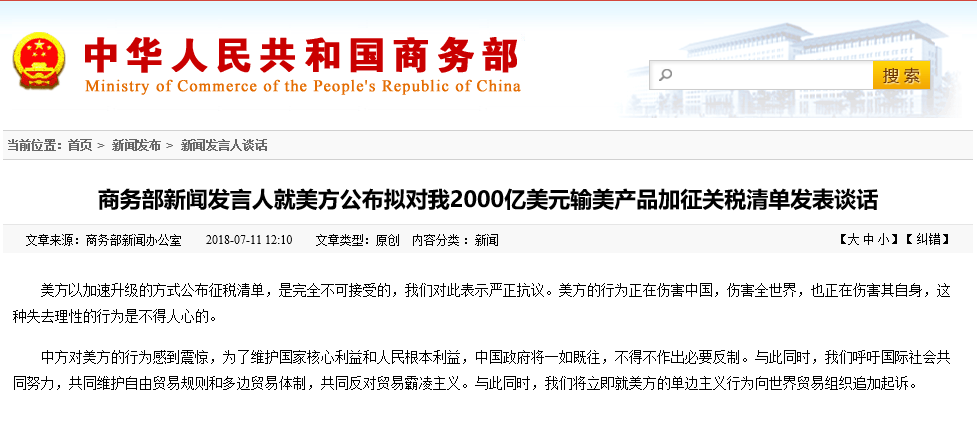 美方以加速升级的方式公布征税清单,是完全不可接受的,我们对此表示严正抗议。美方的行为正在伤害中国,伤害全世界,也正在伤害其自身,这种失去理性的行为是不得人心的。