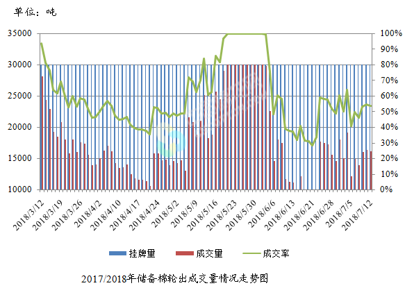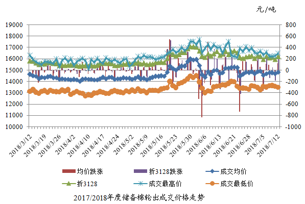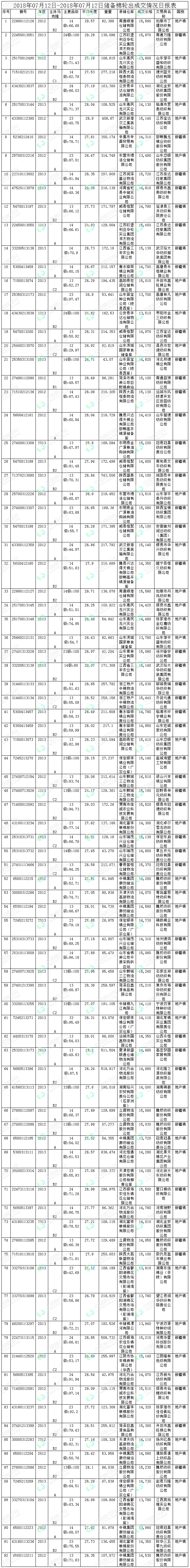 7月12日储备棉轮出销售资源30011.282吨,实际成交16138.798吨,成交率53.78%。平均成交价格14829元/吨(较前一日上涨120元/吨);折3128价格16204元/吨(较前一日上涨258元/吨)。