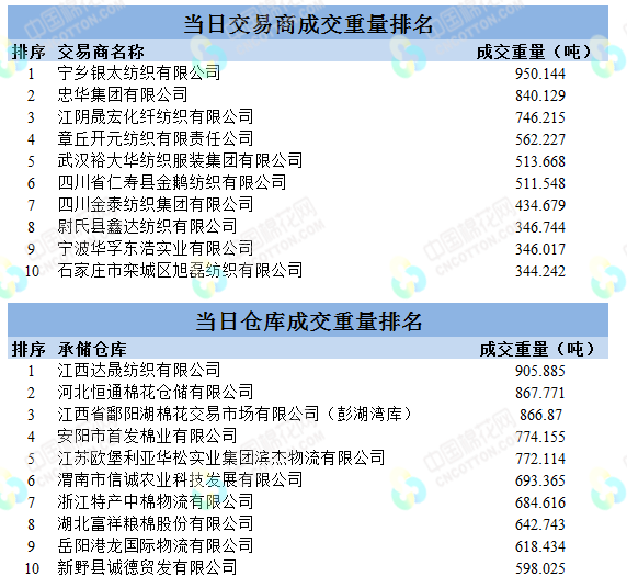 地产棉成交6530.349吨,成交率36.0%,成交均价14341元/吨,平均加价337元/吨,最高成交价15200元/吨,最低成交价13810元/吨。新疆棉成交10648.322吨,成交率89.7%,成交均价15201元/吨,平均加价730元/吨,最高成交价16310元/吨,最低成交价14550元/吨。