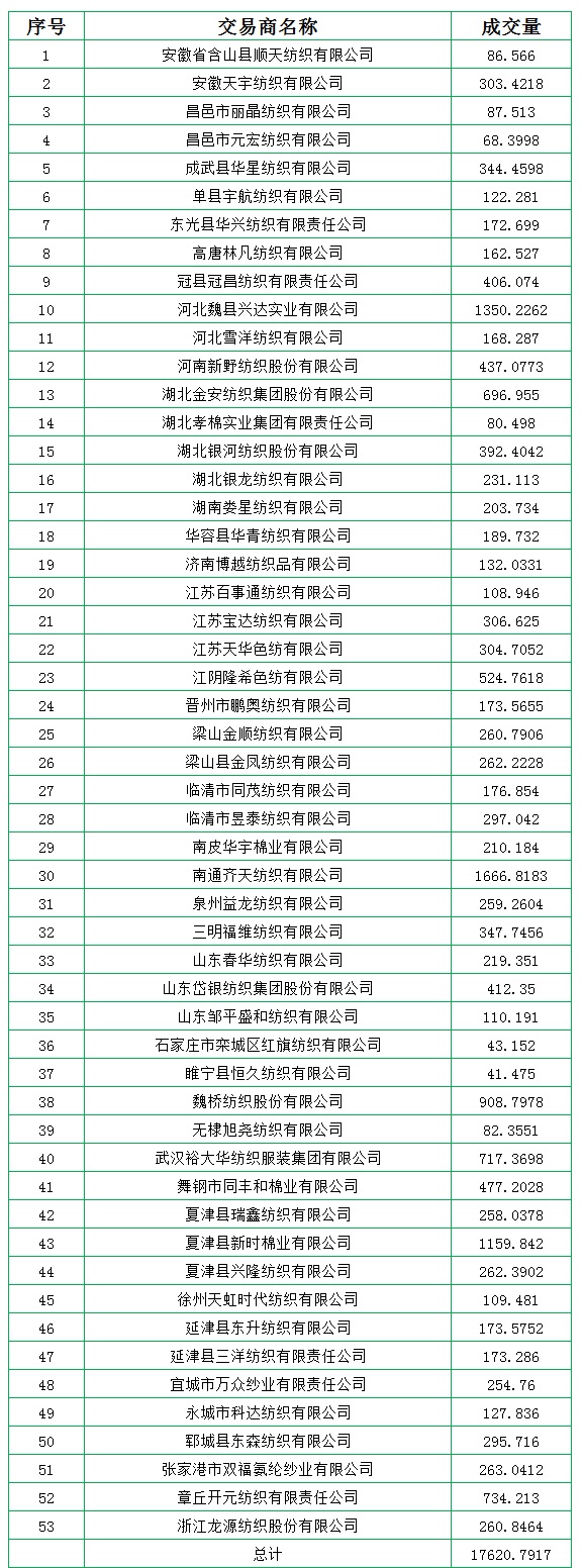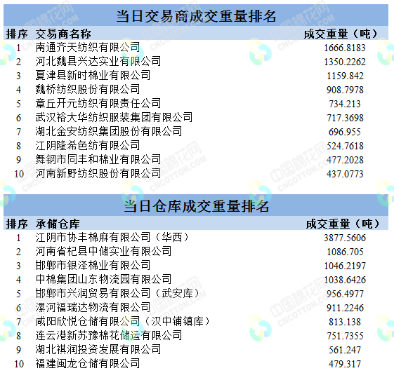地产棉成交4948.6839吨,成交率28.5%,成交均价14284元/吨,平均加价285元/吨,最高成交价15600元/吨,最低成交价13750元/吨。新疆棉成交12672.1078吨,成交率100%,成交均价15080元/吨,平均加价881元/吨,最高成交价16420元/吨,最低成交价13940元/吨。